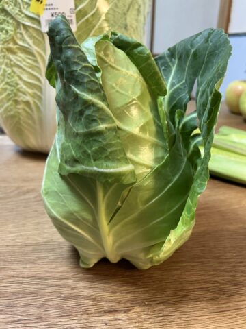タケノコのようにとんがった形の小ぶりなキャベツ。その名も「タケノコキャベツ」