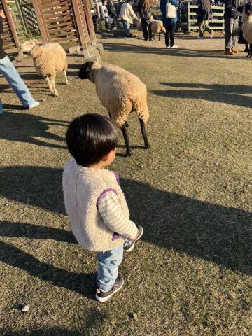 羊さんのふれあい牧場では、最初こそ恐る恐る近づいていたものの、いざ羊さんが近づいてくると全力で逃げる…を繰り返しつつ、