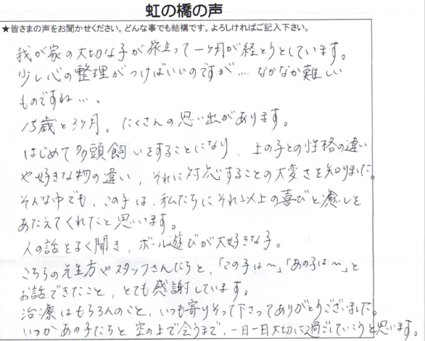 そんな中でも、この子は、私たちにそれ以上の喜びと癒しをあたえてくれたと思います。