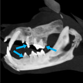 CT検査にて歯肉炎に伴った破歯吸収病巣(歯が溶けた状態)が疑われましたが、それ以外の出血の原因となる病変は認められませんでした。