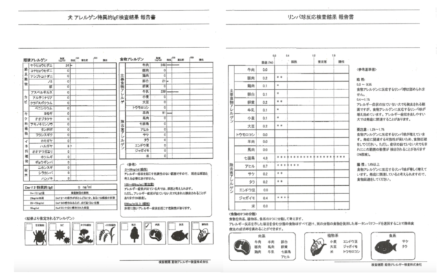 以下アレルギー検査の結果です。
