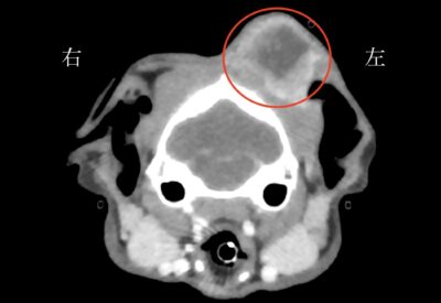 CT検査と組織生検(できものの一部を採取する検査)の結果、できものは扁平上皮癌であり、耳周囲にも浸潤していましたが、水平耳道(鼓膜のある耳の奥側)までは浸潤していませんでした。