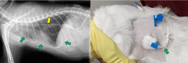 数日前から「元気がない」「食欲がない」「呼吸が苦しそう」といった症状が見られる猫ちゃんが来院されました。画像検査の結果、胸の中に水が溜まる「胸水貯留」が確認されました。