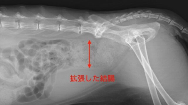 特に猫では、慢性的な便秘が「巨大結腸症」と呼ばれる病態につながることがあります。(以下は猫のレントゲンの画像です)