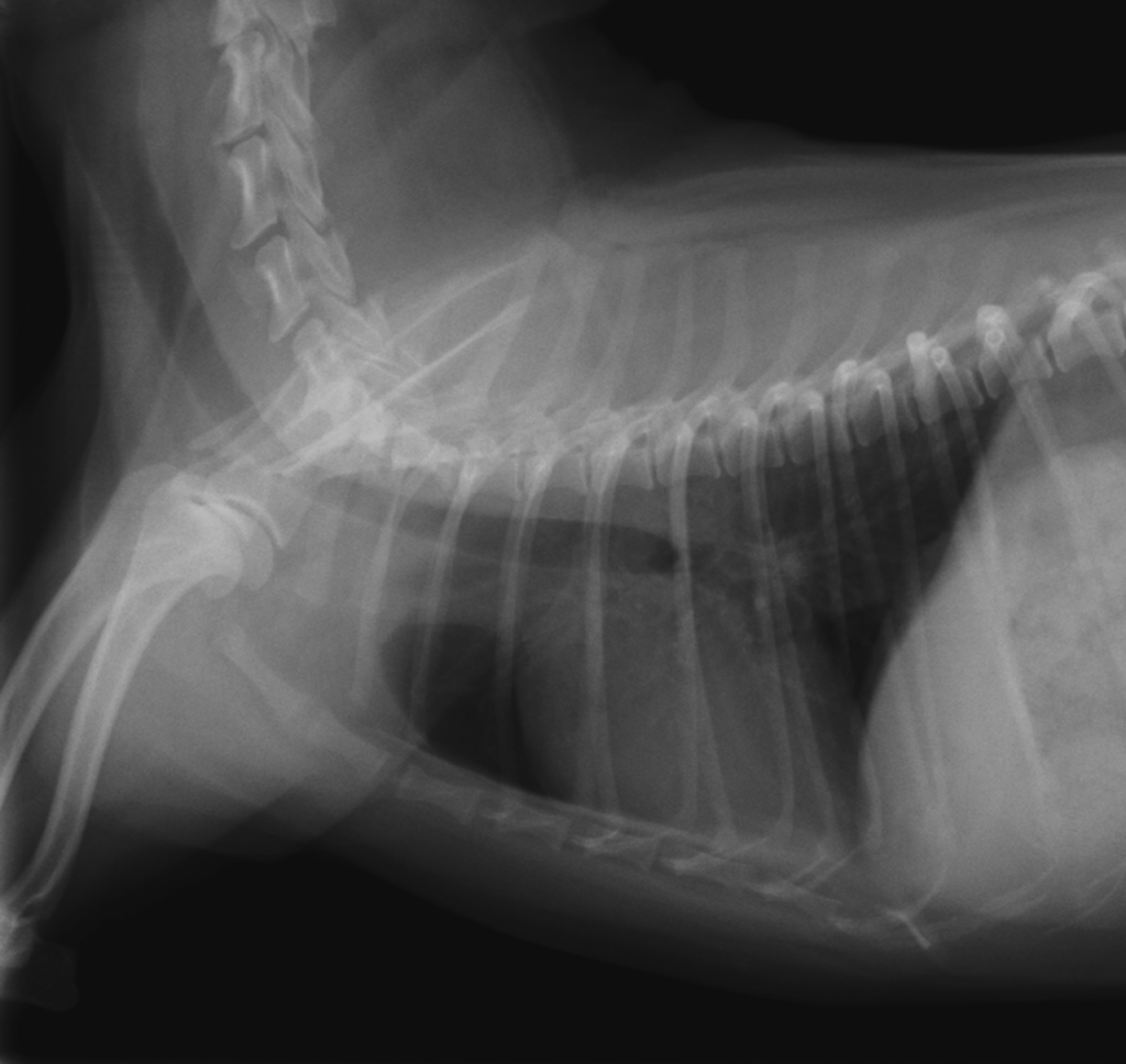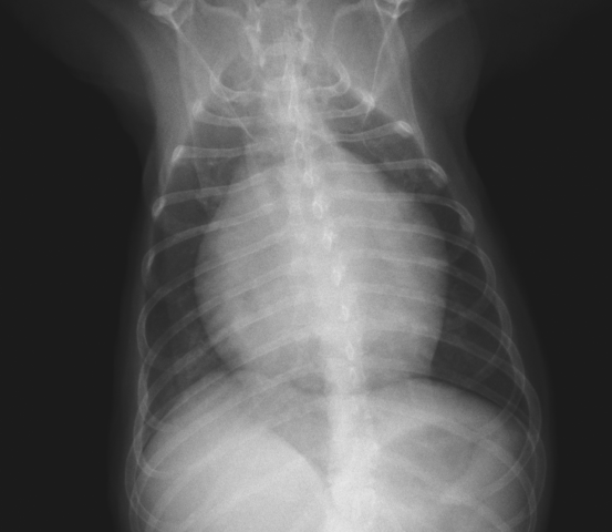 レントゲン検査では、大きく丸くなった心臓が確認できます。
