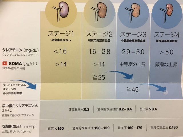最近では血液検査でSDMAという項目を測定することにより、BUNやCreの上昇の前に慢性腎臓病を発見できるようになりました。