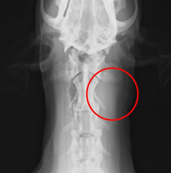 症状がなく、頚のしこりに気づいて来院される場合もありますが、咳や嚥下障害(飲み込みづらい)、元気・食欲低下などが見られて来院することがほとんどです。