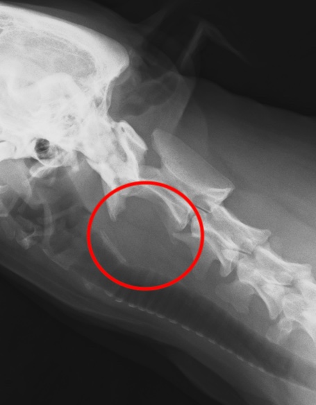 症状がなく、頚のしこりに気づいて来院される場合もありますが、咳や嚥下障害(飲み込みづらい)、元気・食欲低下などが見られて来院することがほとんどです。