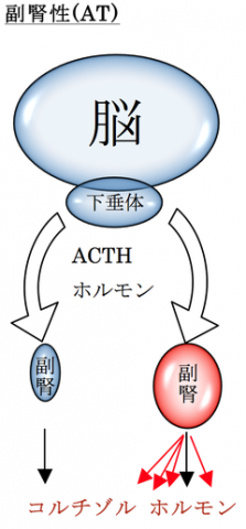 下垂体性のクッシング症候群の場合はACTH濃度は高くなり、副腎性のクッシング症候群の場合はACTH濃度が低くなります。