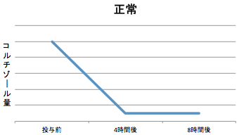 正常な動物ではデキサメタゾンを投与することで、ネガティブフィードバックがかかり、血中コルチゾール濃度は下がります。